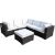 Includes 3 corner sections, 2 mid sections and a cushioned ottoman/coffee table.