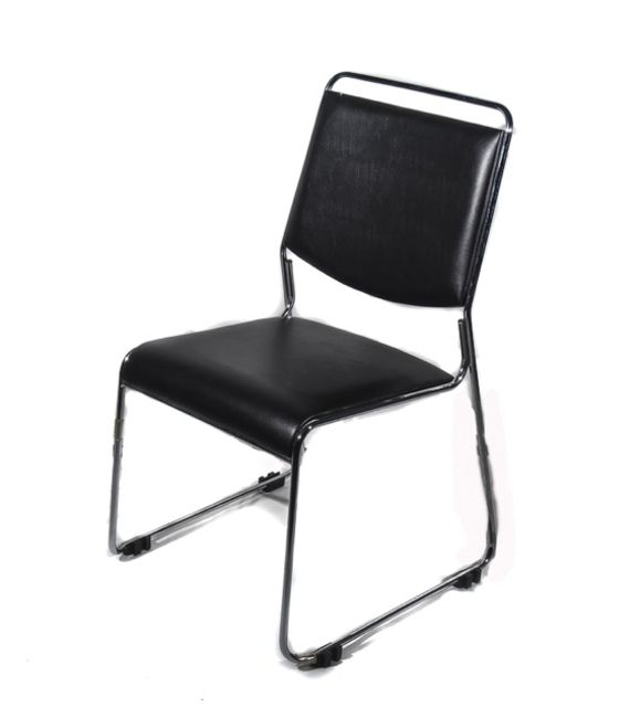 12 x designer  chairs brand new and boxed stacking conference / reception chairs steel chrome framework chairs can link together black pu upholstery you are bidding on 12 chairs