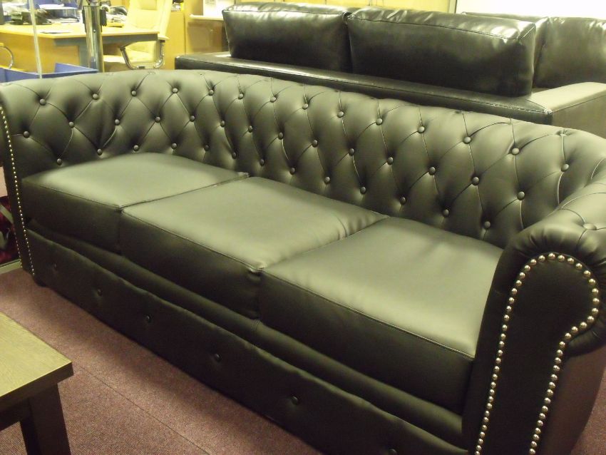 Brand New & Boxed 3 Seater Chesterfield Matt Black Faux Leather Upholstery Great Quality size width 1925mm depth 820mm height 740mm seat height 440mm matching 2 seater and 1 seater sofas available
