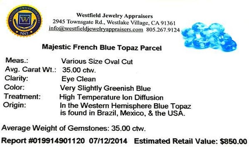 A collection of 9 Oval Cut Majestic French Blue Topaz gemstones totalling 35.00 carat.