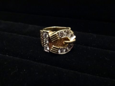 9 Carat Yellow Gold Mens Horse Shoe Belt Buckle Ring, with 9 see through stones. Very rare piece! Weighing approx. 24.73 Grammes. Hard to find one of a kind piece!