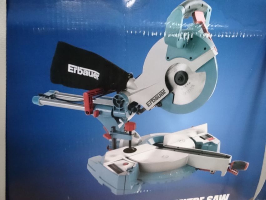 1 x Erbauer 254mm Single Bevel Sliding Mitre Saw. ERB238MSW. Innovative sliding mitre saw featuring detatchable work piece support and ergonomic left and right handed handle. Micro adjustable, folding endstop enables short repeat cuts! Very high retail value! Brand new and boxed. Please note box is slightly damaged!