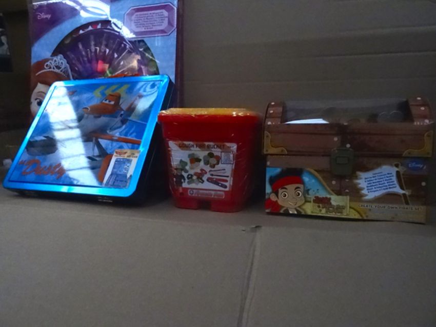1 x Mixed Pallet to contain 60 Items of Brand new toys. To include: 12 x Disney Planes Tin Art Case, 24 x Jake the Neverland Pirate Creat Your Own Pirate Set, 12 x Disney Sofia the First colour art wheel, 12 x Fireman sam dough fire bucket. Approx retail value of £1,000!! Brand new and Boxed stock!
