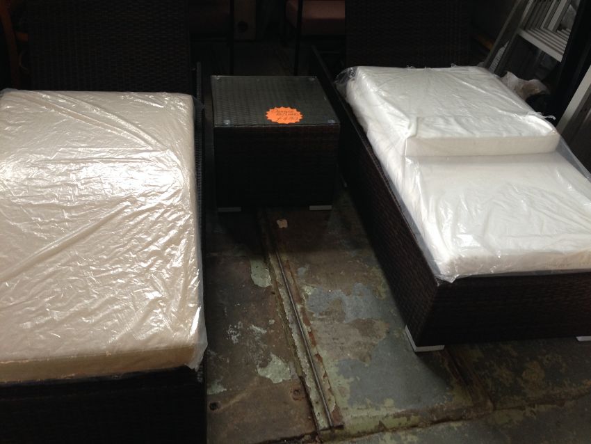Brown Rattan Double Recliners with Cream Cushion and Matching Side Table Garden Brand New and Exclusive Brown Rattan Double Recliners with Cream Cushion and Matching Side Table This stunning sun lounger set has been designed to modernise your outdoor space into a picturesque and stylish setting. Relax either in the garden or by the pool. With adjustable height levels you are able to bathe as comfortably as you wish under the warmth of the sun. Chairs measure: 200 x 70 x 31cm Side Table with Glass Top measures: 50 x 50 x 39cm Cushion covers are shower proof, removable and machine washable High quality resin weave - UV resistant and anti fade