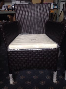 Rattan Brown All Weather High Back Carver Chair Garden/patio/home This sale is for two chair as pictures show Brown high backed luxury carver chair High quality all weather rattan Rust free aluminium frame Anti fade and uv resistant rattan Can be left outside year after year with low maintenance Shower proof and machine washable cushion covers Chair measures: H 88 W 65 D 50cm