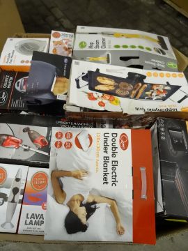 1 Large Pallet (A7) to contain various items such as: quest two in one vacuum, double electric under blanket, lava lamp, 2 slice toaster, teppanyaki grill, quest steam mop, dancing cool cat, russell hobbs toaster and much more. Approx RRP Value £1,275! Unchecked/Untested boxed customer returns!