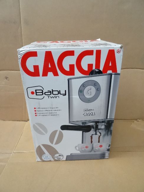 1 x Gaggia Twin Baby Class R18157/40 Manual Coffee Machine. •Dimensions: 24.5x40x26.5cm •Capacity: 1.6L •Wattage: 1300w •15 bar pump pressure •Features an LCD panel for easy control •Removable water tank for easy cleaning •Hand wash recommended •Wipe with a soft, damp cloth RRP £349.99! Please see this link for a comparison. https://www.amara.com/products/baby-class-manual-coffee-machine?utm_source=google&utm_medium=cpc&amss=1e1&pdg=50500048950__77661573870_c_1o2&gclid=CNbX36eV1cMCFTDMtAodNkkACw Unchecked/Untested boxed customer return!