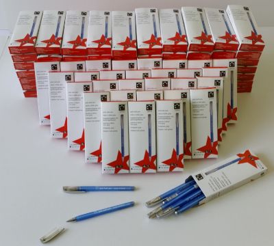 1000 BLUE GRIP BALL PENS 0.4mm. 5 Star Branded. (100 Packs Of 10)