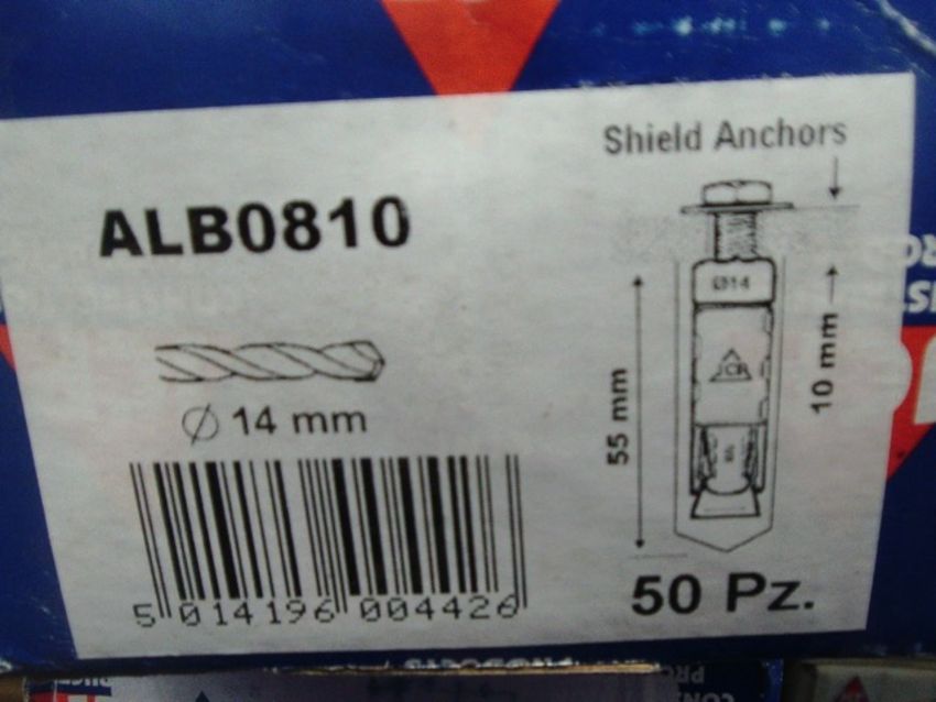 5 x boxes Shield Anchor - ALB 0810 - brand new - anchor length 100mm - 50pcs per box - 250pcs - mrp £200 .