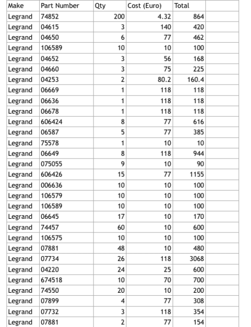 Massive joblot of Legrand high quality brand new boxed MCB's and various switches as listed on spreadsheet.