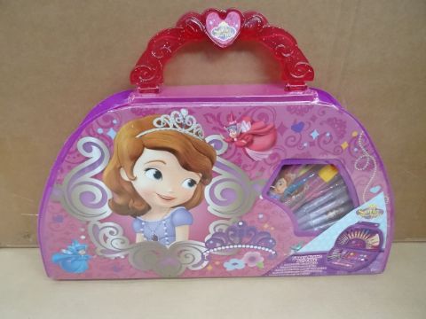1 x Pallet to contain 120 x Disney Sofia The First Carry Along Art Case. Each set includes: 12 x Markers, 12 x Crayons, 12 x Paints, 1 x Paintbrush, 1 x Mixing Tray, 6 x Coloured Pencils 2 x HB Pencils, 1 x Eraser, 1 x Sharpener, 1 x Ruler and 1 x Scissors. Brand new and packaged stock! RRP £16.99 Each! Total RRP Value £2038.80!