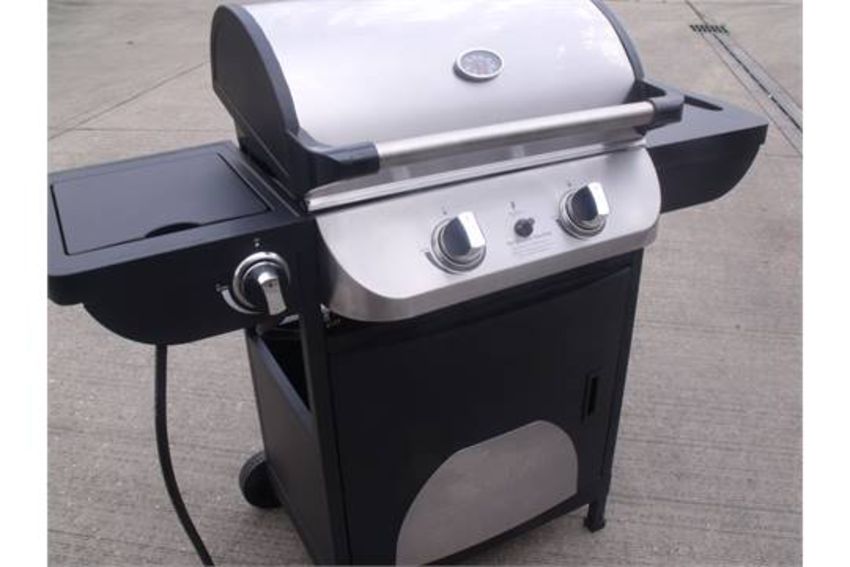 Brand New & BoxedBrand New & Boxed The Manhattan 2 Burner Gas BBQ combines effective gas barbecuing with great value for money. Features: Side burner, steel heat tent flame tamers, drip tray, roasting hood, side shelf, front screen, 2 wheels. Barbecue type: 2 Burner Gas. Fuel type: Propane Gas. Cooks for up to 6 people. Cooking area: (W)45, (D)34cm. Can cook up to 12 burgers at a time. Number of burners: 2. Output: 4.7kW⁄h Ignition type: Piezo. Material: Painted lid and bowl Burner material: Aluminium. Dimensions: (H)96.5, (W)112, (D)52cm. Colour: Black