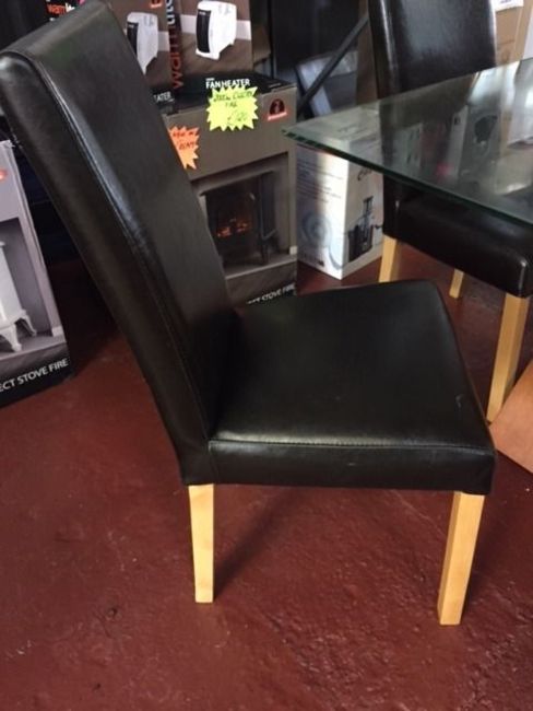 Used but in good condition - Stunning Large Glass Topped Dining Table with 6 Faux Leather Dining Chairs. Stunning Large Glass Topped Dining Table with 6 Faux Leather Dining Chairs A distinctly stylish setting for every dining occasion, this Glass Dining Table is chic, contemporary and inimitable in style. Designed to accommodate up to 6 diners very comfortably, the glass dining table brings a sophisticated edge to every occasion. Table Measures: L 205 / H 77 / W 100cm Chair Measures: L46 / W 46 / H 97cm