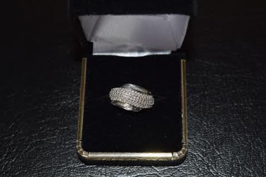 A Bling, Bling 120 Mixed Cut Diamonds = 0.43 carat And Rare Rhodium Over Silver Ring, size M-N, weight 4.00 grams