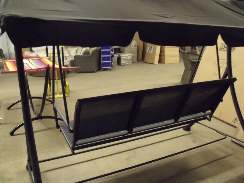 3 SEATER SWING CHAIR BLACK CANOPY WITH BLACK TEXTILENE CHAIRS