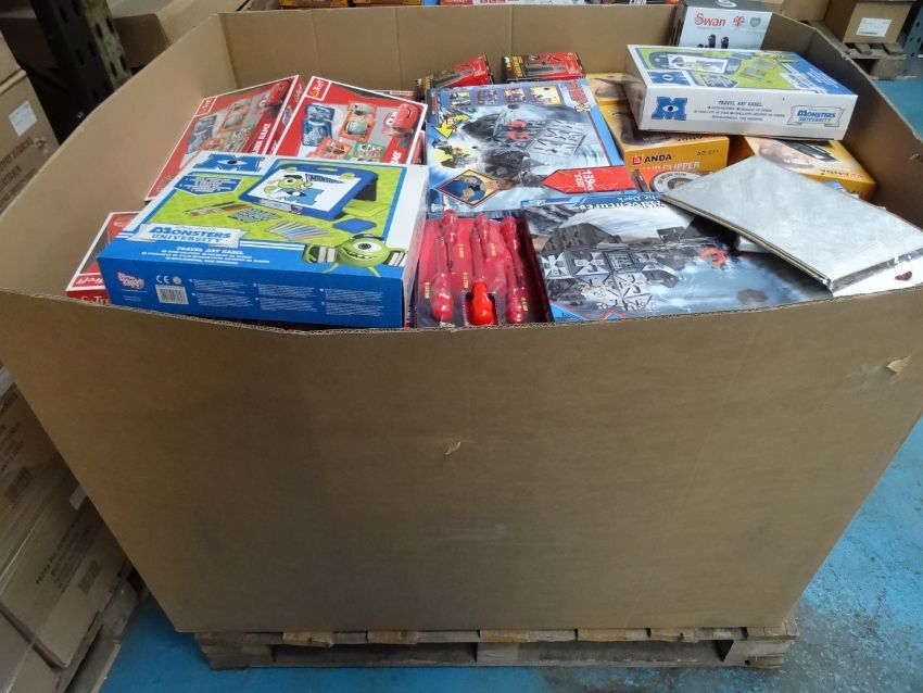 1 x Large Pallet (A7) To Contain a large qty of supermarket/high street stores over stocks. All Brand new. To include: screw driver sets, hair clipper sets, 12v heated travel mug, 8 piece knife block, monsters uni travel art easel, 2pc metal cutting disc set and much more. Total Original Pallet RRP Value £1,511! All brand new stock.