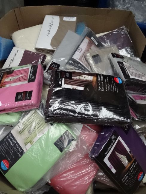 1 x Pallet to contain approx. 24 x Sets of Various Curtains to include black out curtains. Brands Such as Dream Scene, Sandown and Bourne and More. Approx Total RRP Value £1,000! New and Packaged Stock! Huge Re-sale Pottential! Sizes will vary. Packaging may be slightly damaged but this is no affect to the actual item whatsoever!