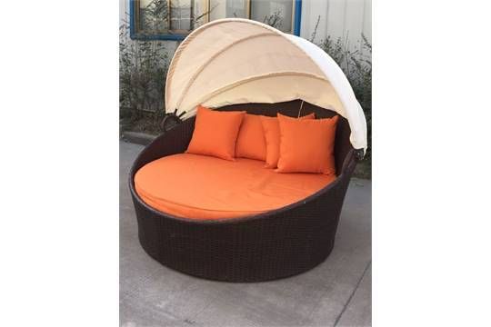 Brand New Stylish all Weather Rattan Day Bed Multi Brown Rattan Deep 100mm Mattress 4 x cushions size 1600mm x 1600mm x 1500mm high Ivory Retractable Canopy - 1800 x 1800 x 1000 - 1 piece - wrapped = 40kg.