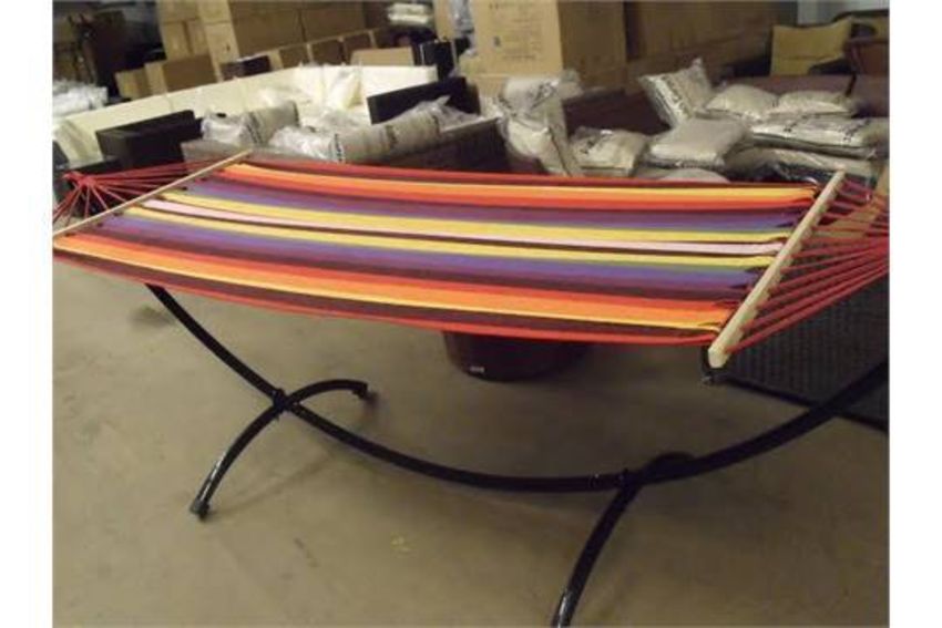 HAMOCK WITH MULTI STRIPED BED BLACK TUBULAR HIGH GLOSS FRAME FLAT PACKED - 1 Box - 1200 x 350 x 100 = 15kg.