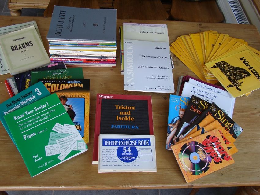 Large qty of music books and sheet music. Ex music shop stock. Circa 250 new or shop soiled, mixed genres/tutor books.
