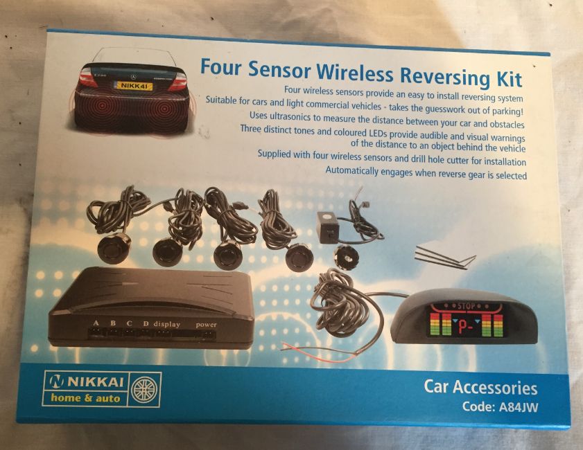 4 SENSOR WIRELESS CAR REVERSING BACKING PARKING KIT -RRP £69.99 _ Four sensors and a wireless control unit provide an easy to install reversing system-Suitable for cars and light commercial vehicles - takes the guesswork out of parking!_ RRP £49.99__Customer return_Boxed_Unchecked. NO VAT ON THIS ITEM__ DELIVERY ONLY