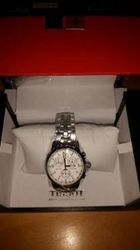 BRAND NEW GENTS TISSOT WATCH T17.1.586.32, SILVER CHRONOGRAPH WATCH, WITH WHITE FACE AND POLISHED STAINLESS STEEL BRACELET - RRP £499.99 FREE P & P SERVICE