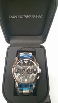 BRAND NEW EMPORIO ARMANI AR0673, GENTS CHRONOGRAPH WATCH, POLISHED STAINLESS BRACELET WITH A BLACK CIRCULAR DIAL - RRP £349.99 FREE P & P SERVICE