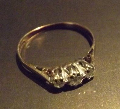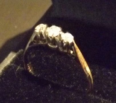 A three stone trilogy ring in 9 carat gold