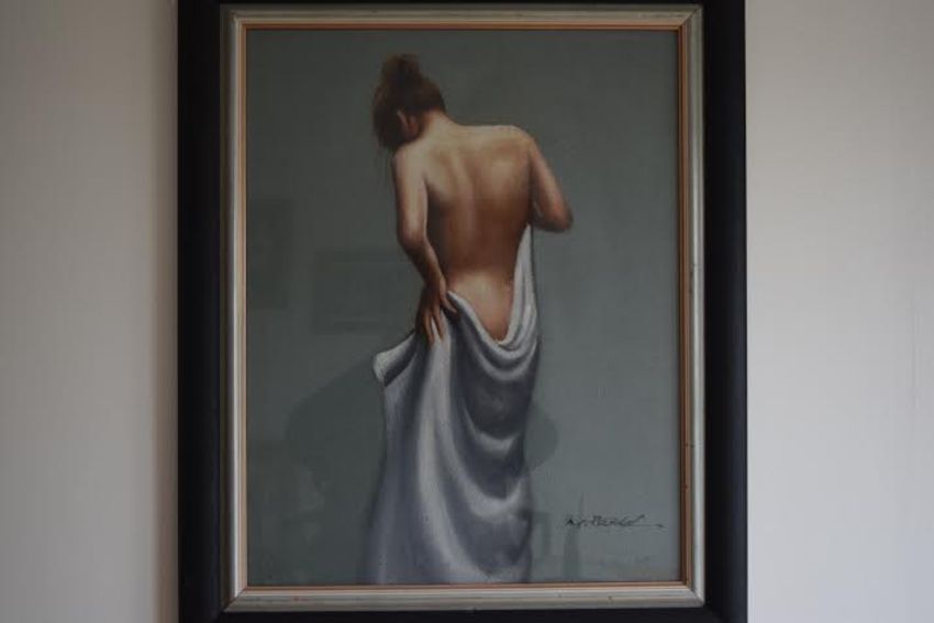A beautifully illustrated picture of a semi nude by artist M. Harold. 76cm x 63cm