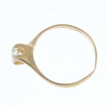A diamond single-stone ring. The brilliant-cut diamond, to the asymmetric shoulders. Estimated diamond weight 0.25ct, I-J colour, SI2-P1 clarity. Weigh 1.1gms.
