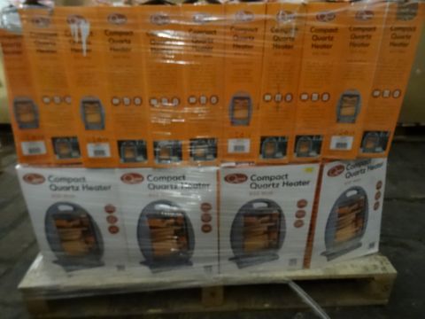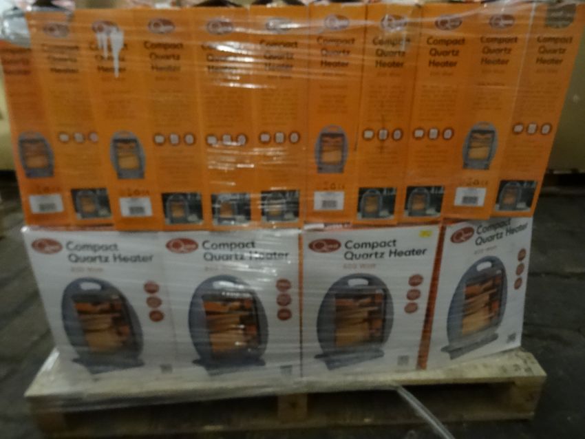 1 x Large Pallet Approx 4 foot high (R17) to contain 74 x Quest 800 Watt Compact Quartz Heaters. 2 Heat Settings, Safety Tilt Cut out, Carry Handle. Total Pallet Original RRP Value £1,110! Unchecked/Untested boxed customer returned stock