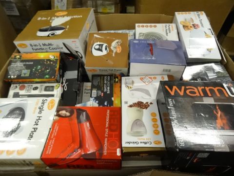 1 x Large Pallet (30) approx 4 foot high to contain a large quantity of various items such as: 8 in 1 multi function cooker, single hot plate, selfie stick, cordless kettle, portable fan heater, solar lights, coffee grinder and much more. Total Orignal RRP Value £1,163.95! Unchecked/Untested customer returned stock! Huge Profit Pottential!!