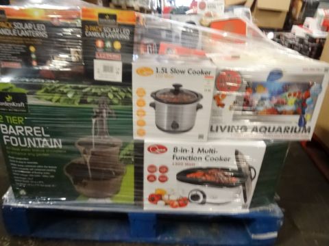 1 x Large Pallet (38) to contain 40 Boxed items to include:2 tier barrel fountine, 1.5l slow cooker, russell hobbs toaster, 9 in 1 steam cleaner, 8 in 1 multi function cooker, solar lights, cordless kettle, candy floss maker, double hot plate, living aquarium and much more BOXED Unchecked/Untested customer returned stock! Total Original Pallet RRP Value £1,448.23! Huge Profit Pottential!!