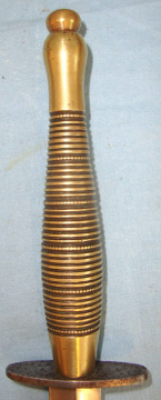 The 6 rows of beads Variant is scarce. This excellent WW2 era Beaded and Ribbed Pattern Fairbairn Sykes fighting knife has a brass beaded and ribbed grip (6 rows of beads).