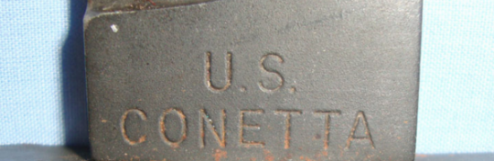 The ricasso is crisply stamped by the manufacturer 'U.S. CONETTA'. It is complete with original leather sheath which has a retaining strap with press stud fastener and large belt loop.