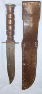 WW2 Era U.S. KA-BAR USMC Fighting Knife By Conetta And Sheath