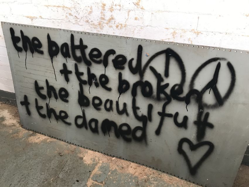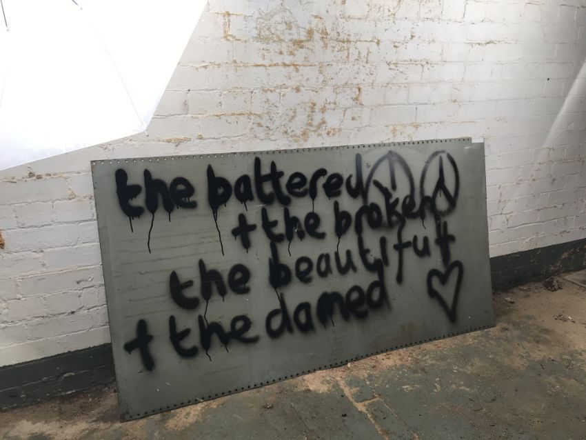 Metal Panel with spray paint inscription - - 90.5 x 170cm