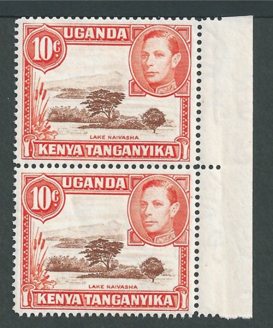 Kenya Uganda and Tanganyika 1941 10c Red-brown and orange, perf 14, vertical marginal pair