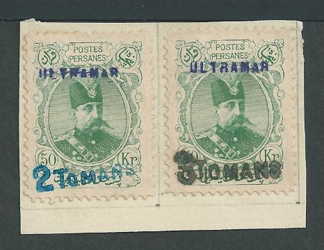 Persia 1903 2to on 50k green, 3to on 50k affixed to portions of album page