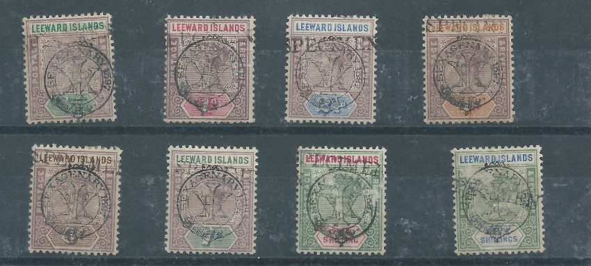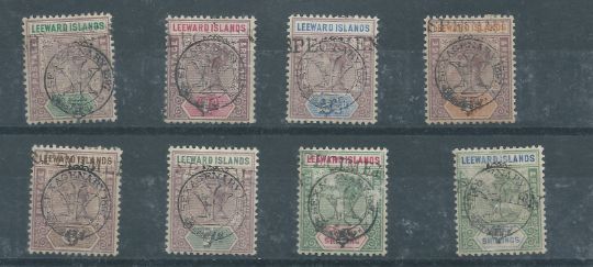 Leeward Islands 1897 Sexagenary issue 1/2d to 5s, S.G. 9-16 (gum toned, 1s and 5s scuffed)