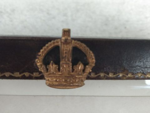Frame brown morocco leather by Jarrolds (Sloane St.) Ltd. Gilded metal Crown 31.5 cm x 23 cm.