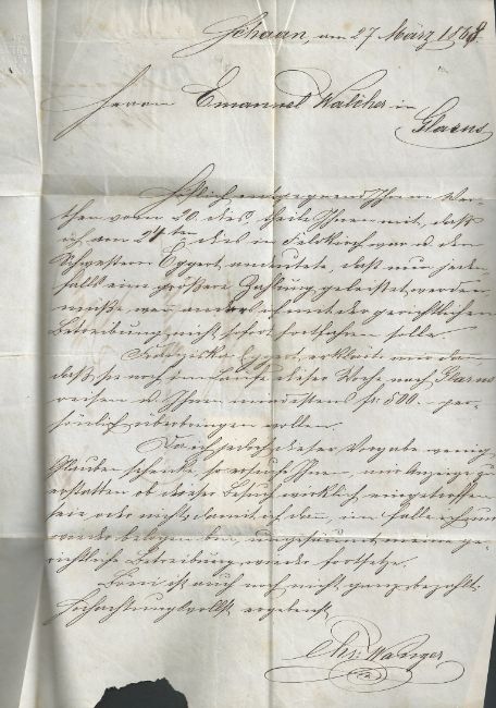 Liechtenstein - Austria Used In 1868 (Mar 27) Entire letter from Christoph Wrangler, to Glares