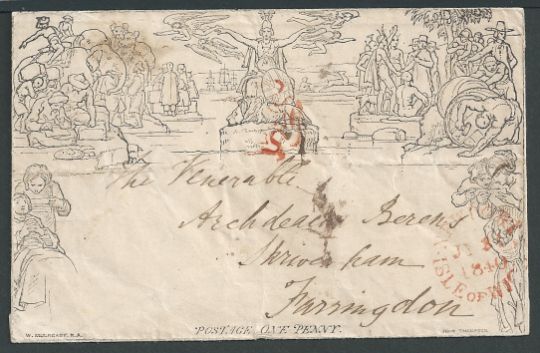 G.B. - Isle Of Wight 1840 (July 31) 1d Mulready envelope (horizontal file fold, staining to flap)