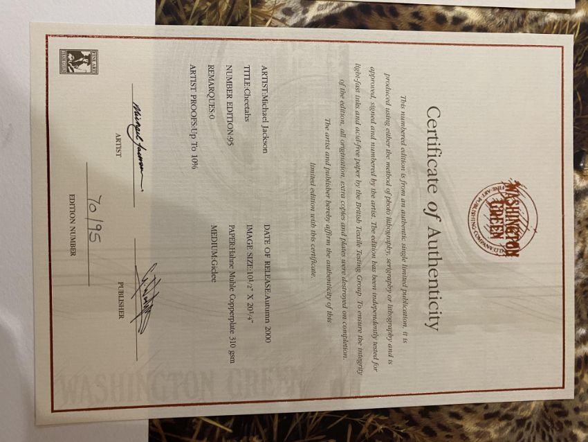 Michael Jackson Limited Edition Print 'Cheetahs' With C.O.A.. size 17 x 26" approx.