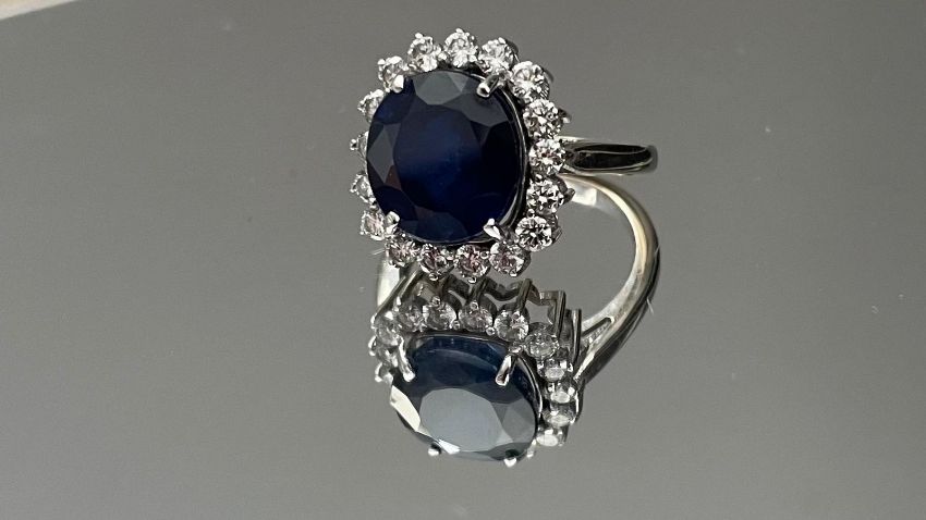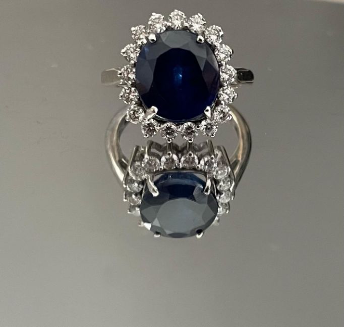 Beautiful 7.90Ct Natural Ceylon Blue Sapphire With Natural Diamonds & 18k White Gold.