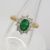 Emerald: natural; oval cut; 0.80 carats Diamonds: natural; 10 x round brilliant cut; 0.50 carats; G-H colour approx; good SI clarity approx