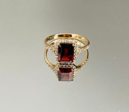 Beautiful Natural Garnet Ring With Diamonds And 18k Gold