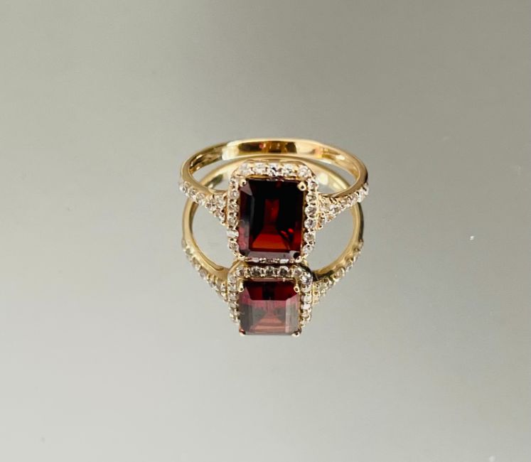 Beautiful Natural Garnet Ring With Diamonds And 18k Gold.