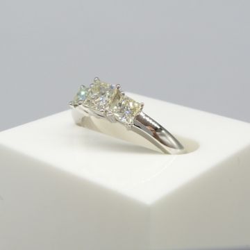 A 0.75 carat graduated princess-cut 3-stone diamond ring in 18ct white gold