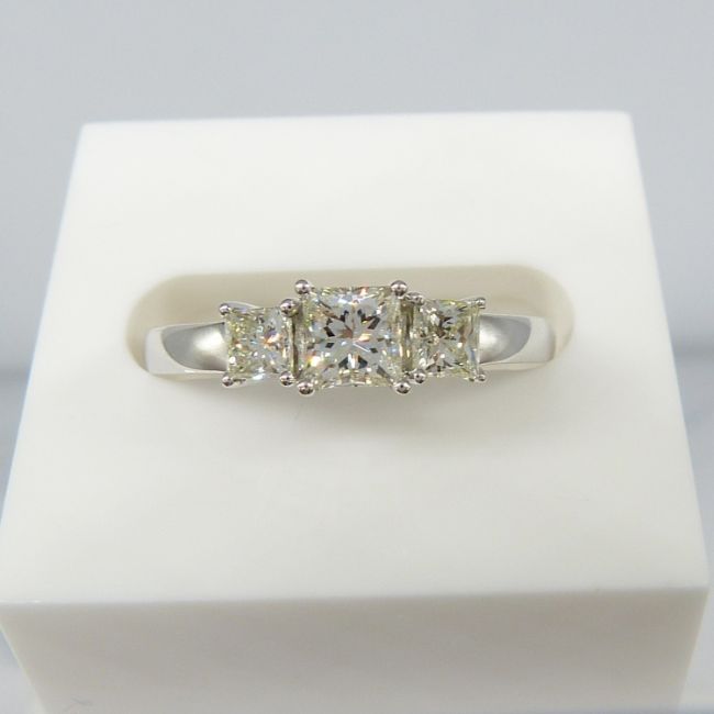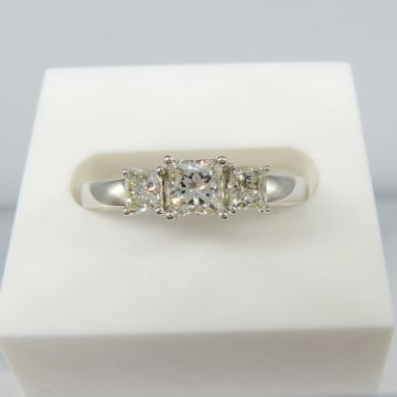 Diamonds: natural; 3 x princess cut; 0.75 carats; L-M colour approx; good SI clarity approx